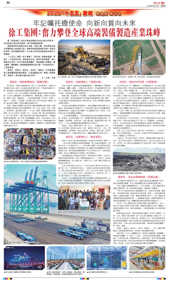 2026年是“十五五”規(guī)劃開(kāi)局之年,更是徐工能級(jí)跨越、動(dòng)能轉(zhuǎn)換、質(zhì)效提升的關(guān)鍵一年。面向“十五五”,徐工將以更卓越的裝備,切實(shí)踐行“工程科技引領(lǐng),裝備美好未來(lái)”的堅(jiān)定諾言,堅(jiān)定不移把高質(zhì)量增長(zhǎng)作為首要任務(wù),堅(jiān)持內(nèi)涵式增長(zhǎng)與外延式擴(kuò)張雙輪驅(qū)動(dòng),加快建設(shè)世界一流企業(yè),以新型工業(yè)化推動(dòng)產(chǎn)業(yè)不斷向高處攀升。
