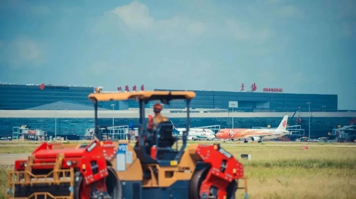 徐工雙鋼輪壓路機(jī)與上海虹橋機(jī)場(chǎng)同框