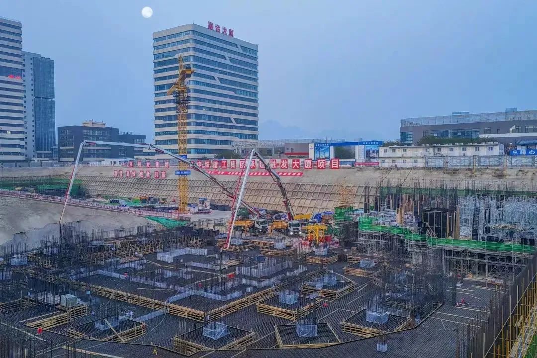 作為超高層建筑,融發(fā)大廈項目施工難點遠遠高于普通房建項目,建設過程中面臨深基坑施工、大體積混凝土施工、高強混凝土施工、超高泵送等多項泵送難題,十分考驗泵車穩(wěn)定性、可靠性和工作效率。