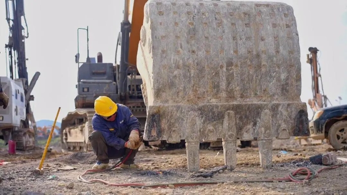 除了為客戶提供機(jī)型配置方案、挖掘機(jī)與自卸車的配合方案,徐工挖機(jī)相關(guān)負(fù)責(zé)人表示,“我們還根據(jù)平場的物料特點,為客戶選擇了合適的鏟斗、斗齒、釬桿、履帶板等部件?!?/span>