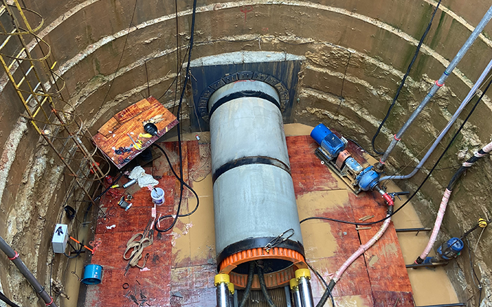 現(xiàn)場地質(zhì)較為復(fù)雜,巖石、黏土和細(xì)沙層交錯,施工中既要防止細(xì)沙層的超挖塌陷,又要避免黏土地層糊刀盤,這對巖石刀盤的地層適應(yīng)性提出了考驗(yàn)。通過對現(xiàn)場地層的綜合考究,徐工技術(shù)人員設(shè)定合理巖石刀盤開口率,一次到位、順利貫通。徐工頂管機(jī)從施工效率、施工質(zhì)量上交出了一份令施工方滿意的答卷!