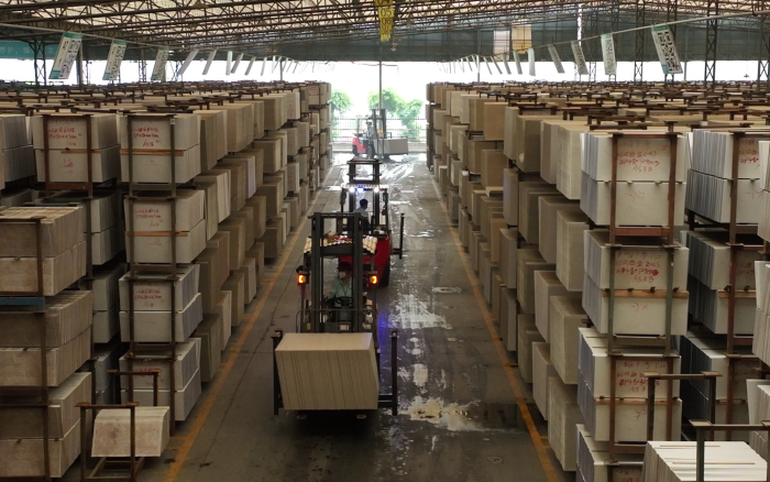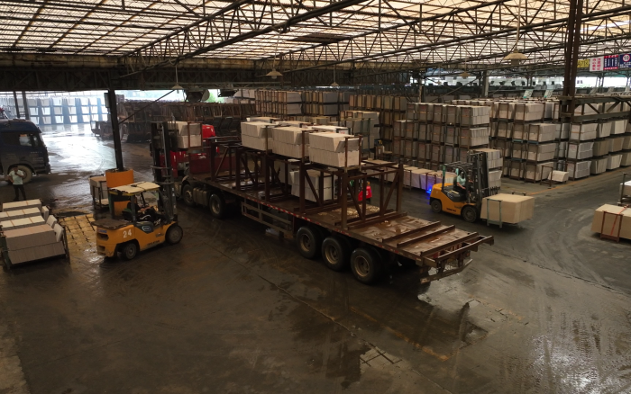 在華南區(qū)某大型陶瓷廠內(nèi),十幾臺(tái)徐工重載高壓鋰電叉車正在進(jìn)行繁忙的搬運(yùn)裝卸工作,為即將到來的市場(chǎng)旺季做好準(zhǔn)備。