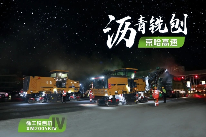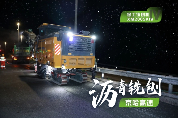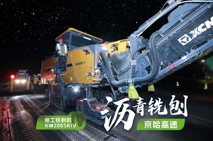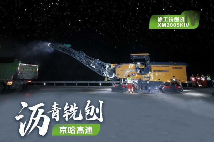 此次施工項(xiàng)目為京哈高速的路面改擴(kuò)建工程,銑刨深度5cm,銑刨速度25m/min。由于北京地區(qū)日間車流量大,交通壓力較大,因此施工方選擇在夜間施工,日間恢復(fù)行車,盡量避免施工給交通帶來(lái)影響。由于夜間施工更加考驗(yàn)施工設(shè)備的穩(wěn)定性、施工質(zhì)量的可靠性,施工方選擇了兩臺(tái)徐工兩米銑刨機(jī)作為本次高速公路養(yǎng)護(hù)工程的銑刨設(shè)備,分別為XM2005KIV和XM200KII,同時(shí)進(jìn)行銑刨作業(yè),并肩作戰(zhàn),按下施工進(jìn)度快進(jìn)鍵。