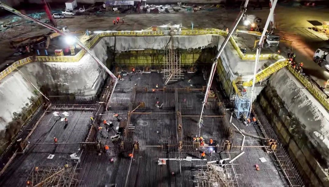施工現(xiàn)場,三臺徐工大米數(shù)泵車臂架齊伸、晝夜不休,48小時完成9300立方米澆筑量,高效、穩(wěn)定、精準地完成泵送任務,助力項目實現(xiàn)重要節(jié)點目標。