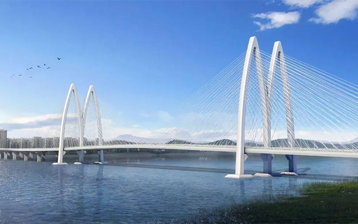 涪江六橋是遂寧首座斜拉橋,主橋?yàn)殡p塔斜拉橋,項(xiàng)目總投資約19億元,路線全長(zhǎng)3215千米,主墩最高118米,是全國(guó)首座無(wú)筋鋼殼混凝土組合柔性索塔。項(xiàng)目計(jì)劃于2025年10月建成,建成后將成為遂寧的標(biāo)志性建筑,現(xiàn)已進(jìn)入橋梁主墩索塔施工階段。