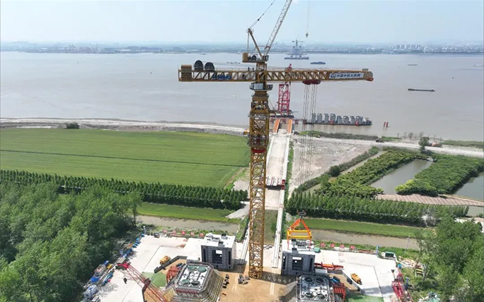 張靖皋長(zhǎng)江大橋南航道橋北主塔工區(qū)1.5萬(wàn)噸米塔式起重機(jī)順利驗(yàn)收,徐工XGT15000-600S最大起升高度400米,最大起重量600噸,搭載了10項(xiàng)世界首創(chuàng)技術(shù)。