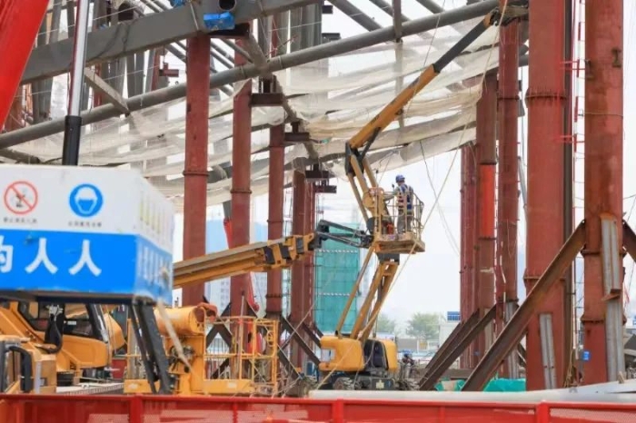 此次施工的主力產(chǎn)品為徐工的XGS22K 、XGS28K、XGS40K三款車型,這三款車型作業(yè)幅度分別是17.2米、22米和24.9米,再加上帶有一節(jié)小飛臂的設(shè)計(jì),使得其跨障能力強(qiáng),更適宜現(xiàn)場這種復(fù)雜且密集的鋼結(jié)構(gòu)作業(yè)。160°的平臺(tái)回轉(zhuǎn)角度,也賦予了它更加靈活的使用方法。