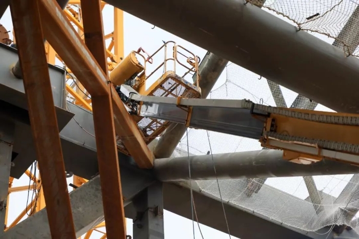 忙碌的工地上,隨處可見“徐工金”辛勞的身影。此次參與施工的有四十余臺(tái)徐工高空作業(yè)平臺(tái),高度從22米到40米不等,主要負(fù)責(zé)場館鋼結(jié)構(gòu)的安裝工作。