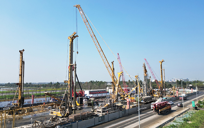 徐工旋挖鉆機、連續(xù)墻液壓抓斗、雙輪銑等基礎工程施工成套化設備集結出擊,參與建設南沙至珠海(中山)城際萬頃沙至興中段(以下簡稱“南珠中城際”)項目,助力中山邁進大灣區(qū)軌道交通新時代。