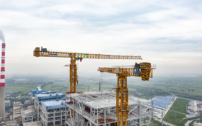 側(cè)望長江畔,機(jī)器轟鳴、江水潺潺,華能太倉電廠機(jī)組擴(kuò)建項(xiàng)目施工現(xiàn)場一派繁忙景象,XGT3100-160S、XGT1350-64S兩臺(tái)徐工超大塔穩(wěn)穩(wěn)矗立在高聳的鋼架間吊裝作業(yè)。