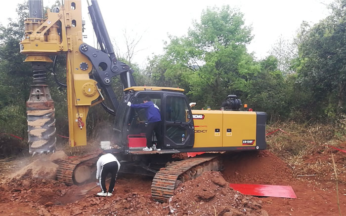 現(xiàn)場施工樁徑1000mm左右,樁深7.5-13m,徐工XR138F日鉆孔達(dá)20m??蛻糍潎@道:“徐工產(chǎn)品設(shè)備穩(wěn)定,成孔精度高,施工效率快,值得信賴!”