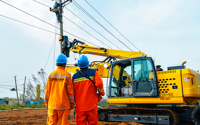 面對(duì)秋臺(tái)風(fēng)“摩羯”的侵襲,廣東交通運(yùn)輸部將臺(tái)風(fēng)響應(yīng)等級(jí)提升至一級(jí)。徐工開挖立桿一體機(jī)迎“風(fēng)”而上,在廣東緊急開展抗災(zāi)復(fù)電搶修工作,讓原本需要2臺(tái)挖機(jī)、10多名工作人員齊力拉線的工作變得安全“輕松”,大大降低了災(zāi)后搶修的人身風(fēng)險(xiǎn),保障當(dāng)?shù)鼐用竦碾娏Π踩€(wěn)定供給。
