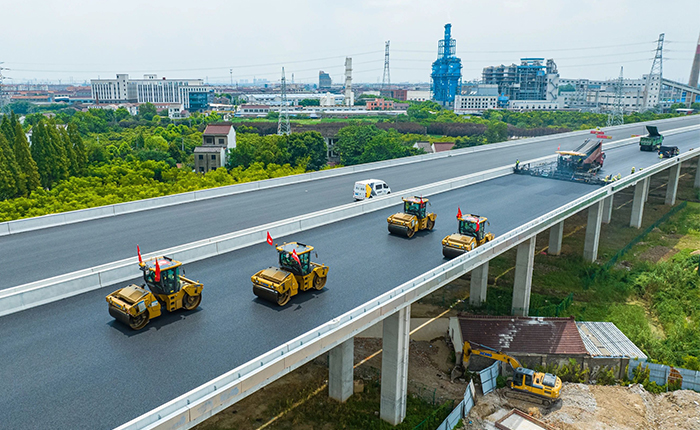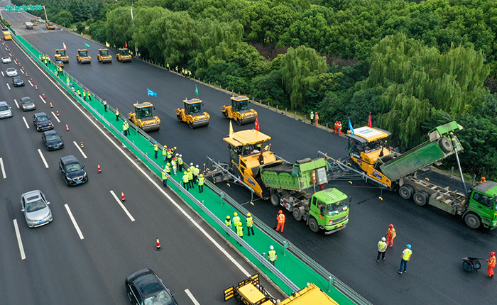 常泰長江大橋大寬度整幅面層的“一鍵鋪平”,也備受矚目。進行此次攤鋪工作的是徐工自主研發(fā)的大米數(shù)攤鋪機和13噸雙鋼輪壓路機,攤鋪寬度15m,厚度4cm,屬于大寬度的整幅面層攤鋪,實現(xiàn)施工效率、橋面平整度雙提升。鋪裝工程涵蓋了橋面、主路、匝道等多個施工場景,充分體現(xiàn)出徐工設(shè)備的廣泛適用性和靈活性。無論是寬闊的主橋面,還是復雜的匝道區(qū)域,都能實現(xiàn)高質(zhì)量的整幅面層攤鋪。