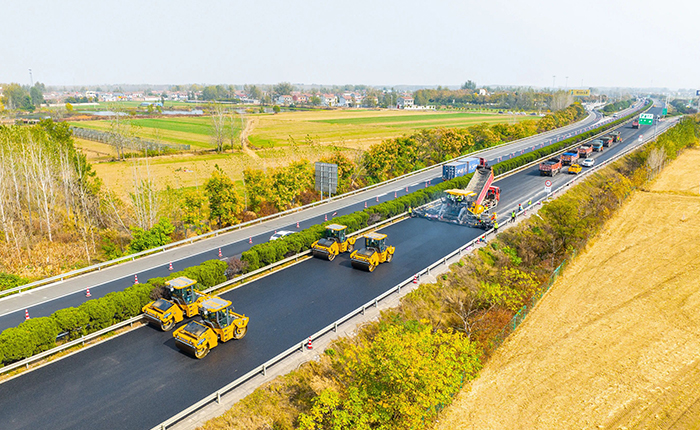 自2022年下半年開始,徐工成套道路機械就已多次參與過連霍高速的施工工作,受到業(yè)主方的肯定。2024年下半年,徐工道路明星“工友團”再次閃亮登場,憑借自己的智慧“大腦”,在連霍高速的養(yǎng)護工程建設(shè)中大放異彩。施工由徐工超大寬度攤鋪機RP2405和壓路機XD133S這兩款高性能設(shè)備聯(lián)袂,在攤鋪厚度為100px的瀝青上面層進行高效施工。憑借超強的作業(yè)能力和先進可靠的產(chǎn)品性能,在高速路面上精準實現(xiàn)一次攤鋪成型。