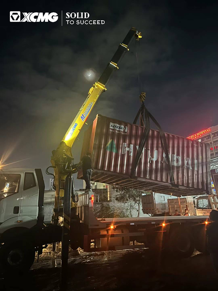 徐工隨車起重機(jī)采用了先進(jìn)的液壓系統(tǒng)與操控技術(shù),具備了高效、穩(wěn)定的工作性能。在集裝箱吊裝轉(zhuǎn)運(yùn)過程中,起重機(jī)憑借強(qiáng)大的起重能力與卓越的穩(wěn)定性,能夠在狹小或復(fù)雜的空間內(nèi)進(jìn)行精確吊裝。