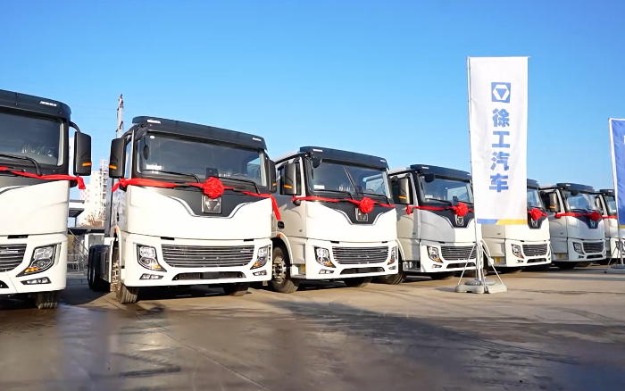 戰(zhàn)鼓催征,鳴笛起航。近日,百臺徐工新能源純電動牽引車交付儀式在河北滄州順利舉辦,一排排徐工新能源牽引車整齊列陣,以昂揚(yáng)之姿奔向滄州砂石運(yùn)輸“第一線”,為滄州區(qū)域脫碳進(jìn)程寫下生動注腳。