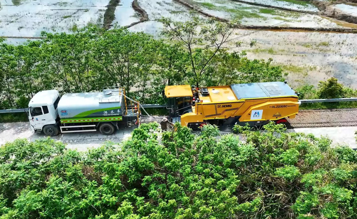 針對這些痛點,徐工智慧施工技術(shù)成套道路裝備全場景解決方案,專門針對鄉(xiāng)村道路施工場景,制定了適配的場景解決方案。該方案融合了推土、平地等多項3D控制技術(shù),并配備水泥路面冷再生機,實現(xiàn)了全斷面的數(shù)據(jù)融合,有效消除了原有路面的缺陷。特別值得一提的是,該方案將北斗定位技術(shù)與慣性導航系統(tǒng)相結(jié)合,巧妙解決了在定位信號不佳區(qū)域的施工難題。