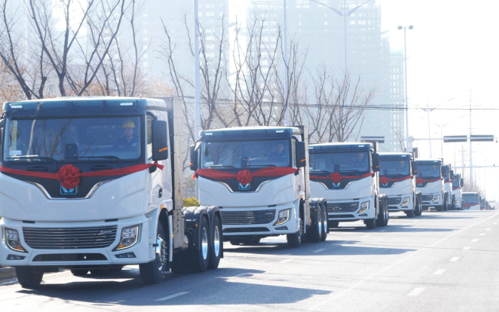 “我宣布,徐工新能源牽引車百臺交付暨千臺簽約儀式圓滿禮成,發(fā)車!”徐工集團(tuán)副總經(jīng)理,徐工汽車總經(jīng)理、黨委書記夏泳泳一聲令下,百臺徐工新能源牽引車隊列整齊、邁步向前,為更多區(qū)域“雙碳”目標(biāo)實現(xiàn)作出更大貢獻(xiàn)。