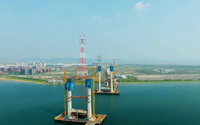 該項目建設(shè)規(guī)模大,結(jié)構(gòu)類型多,科技含量高。全線海域橋梁長度約9公里,海上作業(yè)工程量大,項目施工區(qū)域內(nèi)氣象、水文、地質(zhì)條件復(fù)雜,同時還面臨航運繁忙,海上施工組織難度大等挑戰(zhàn)。