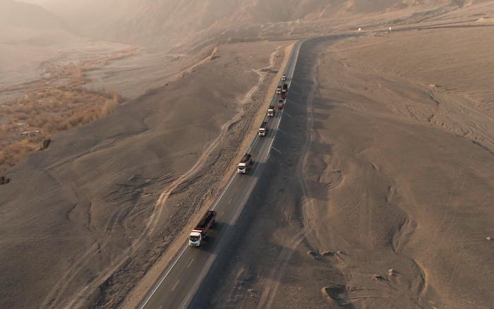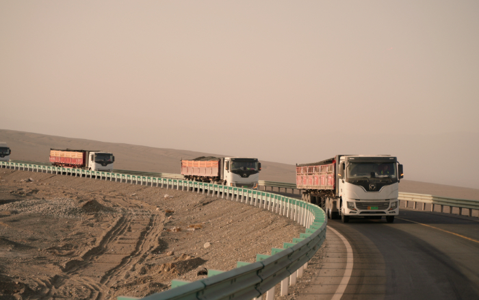西北戈壁灘上山脈和天際線交織成一幅壯麗的畫卷這片土地不僅有著豐饒的礦產(chǎn)資源還孕育著不斷崛起的力量徐工新能源重卡應(yīng)時(shí)而至。