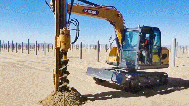 與以往常規(guī)項(xiàng)目不同,此次徐工挖掘機(jī)主要擔(dān)任光伏樁的鋪設(shè)工作,通過改裝振動(dòng)錘和引孔機(jī)等多功能屬具,有效滿足現(xiàn)場(chǎng)多元化施工需求。