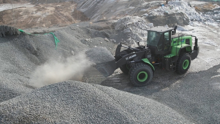廠區(qū)內(nèi),從N系列,V系列,再到如今的XC9系列,更有綠色化的新能源產(chǎn)品,“我非??春没靹?dòng)裝載機(jī)在東北的市場前景。無論是拌合站還是露天礦,采購裝載機(jī)時(shí)是非??粗仄放扑淼钠焚|(zhì)的,我們一直選擇徐工!”