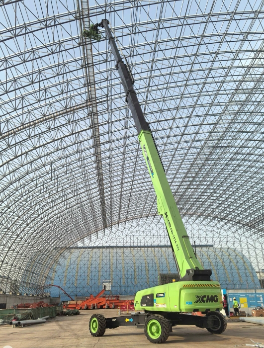 據(jù)悉,該項(xiàng)目需建設(shè)50米級(jí)廠房,且工地對(duì)燃料要求嚴(yán)格,傳統(tǒng)設(shè)備因高度不足、燃油限制難以滿足嚴(yán)苛施工要求,徐工XGS52ACK-Li憑借52米的最大作業(yè)高度、25m最大作業(yè)幅度及300/460kg雙載荷能力,完美承接廠房頂棚消防系統(tǒng)與管道安裝任務(wù),全程零排放、零燃油消耗,契合電廠環(huán)保施工標(biāo)準(zhǔn)。