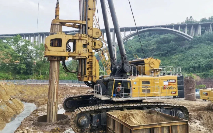 徐工旋挖鉆機(jī)憑借自主研發(fā)的智能加壓系統(tǒng)與自適應(yīng)扭矩控制技術(shù),成功克服硬質(zhì)灰?guī)r層鉆進(jìn)效率低、孔壁易坍塌等難題,為后續(xù)墩柱澆筑和主橋合龍爭(zhēng)取了時(shí)間。