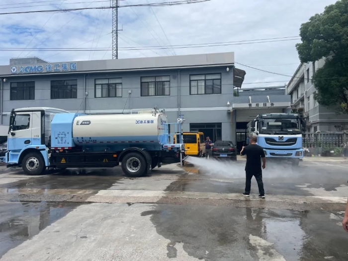活動現(xiàn)場,徐工純電動高壓清洗車與純電動掃路車協(xié)同作業(yè),成為焦點(diǎn)。純電動高壓清洗車宛如一位精準(zhǔn)高效的“清潔能手”,憑借大于8Mpa的高壓水泵及24m的對沖清洗寬度,對道路進(jìn)行沖洗。無論是頑固的油污、泥沙,還是藏匿在縫隙中的灰塵,都能被迅速沖刷干凈。