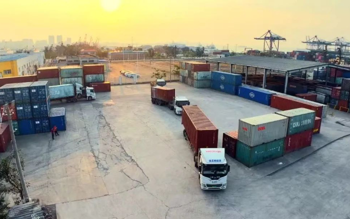巨輪泊岸,裝船機臂展如虹,一輛輛身披晨光的徐工新能源重卡,在碼頭前沿與堆場間穿梭不息,織就一幅物流奔騰、經(jīng)濟躍動的壯闊圖景。