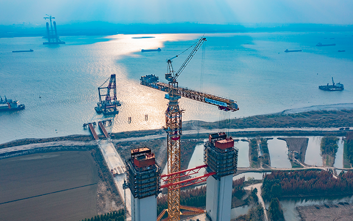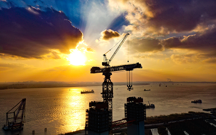 近日,在世界最大跨徑懸索橋--張靖皋長江大橋南航道橋北主塔施工現(xiàn)場,徐工XGT15000-600S超大型塔機如鋼鐵巨人伸展手臂,將重達數(shù)百噸的鋼塔節(jié)段緩緩吊起,“搭積木”般穩(wěn)穩(wěn)放落在塔柱上,贏得施工方“技術(shù)先進、安全可靠、吊裝能力強、操作平穩(wěn)、就位精準、安拆效率高、智能化水平高、施工效益顯著”的高度肯定。