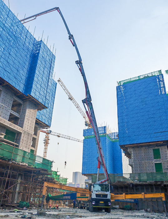 在高鐵新區(qū)超高層項(xiàng)目中,258 米地標(biāo)建筑核心筒澆筑是關(guān)鍵環(huán)節(jié),對(duì)泵車的覆蓋能力和精準(zhǔn)度要求嚴(yán)苛。徐工72米泵車以71.1 米有效長(zhǎng)度,輕松完成了這一艱巨任務(wù)。智能防傾翻技術(shù)、智能臂架技術(shù)等充分展現(xiàn)了 “中國(guó)高度” 背后的精準(zhǔn)實(shí)力。
