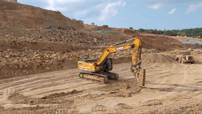 徐工挖掘機打破碎很有勁,駕駛舒適。我們在這個項目上主要做巨石破碎工作,徐工的設(shè)備在回轉(zhuǎn)、破碎等動作上都表現(xiàn)的很優(yōu)秀,屬具更換很便捷,底盤比其他品牌的同噸位設(shè)備都要穩(wěn)。