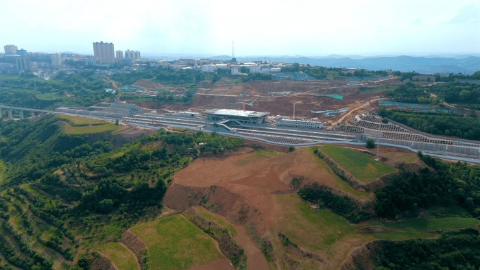 西安至延安高鐵控制性節(jié)點——宜君高鐵站建設(shè)現(xiàn)場,巨型鋼網(wǎng)架正凌空合龍。這座以“漢魏風(fēng)骨”為設(shè)計靈魂的站房,自開工以來歷經(jīng)三次寒暑攻堅,現(xiàn)已進(jìn)入主體封頂沖刺階段。
