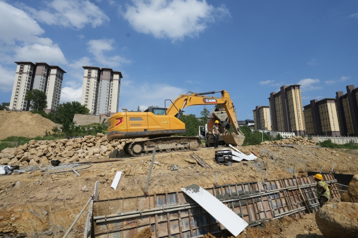 2024年初,近十臺(tái)身披“徐工金”的XE200GA挖掘機(jī)作為項(xiàng)目“開(kāi)荒者”率先進(jìn)駐工地,承擔(dān)起開(kāi)荒挖裝、圍擋模具吊裝、圍擋澆筑等關(guān)鍵基礎(chǔ)作業(yè)。