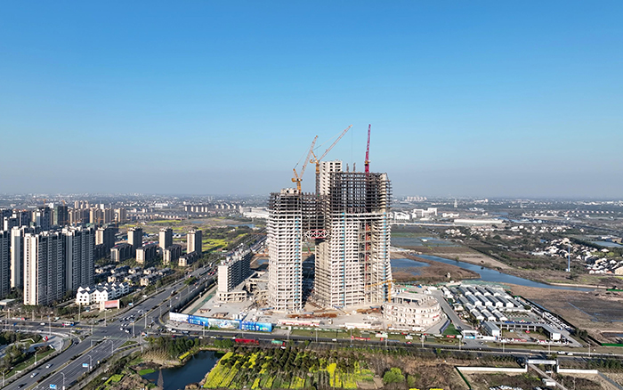 XGL630-50S憑借高效、精準的吊裝性能、出色的操控微動性,克服施工現(xiàn)場扭轉(zhuǎn)不規(guī)則、樓板不連續(xù)、尺寸突變、構(gòu)件間斷等問題,高效完成樓承板、鋼結(jié)構(gòu)和核心筒主體結(jié)構(gòu)等建筑材料的吊裝重任,給江南煙雨帶來了一抹溫暖亮麗的色彩。