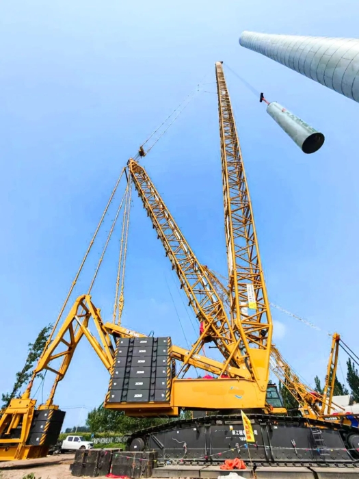 作為風電吊裝領域的實力擔當,XLC15000M具備1100噸最大起重量及14580噸米最大起重力矩。其能力覆蓋輪轂中心高度160米以下、10兆瓦及以下各型風電機組的整體吊裝,可應對170米高度分體吊裝的行業(yè)挑戰(zhàn)。核心創(chuàng)新點包括: