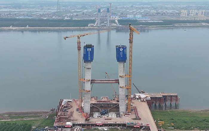 初秋時(shí)節(jié),長(zhǎng)江之畔,兩臺(tái)徐工XGT600A-25S塔機(jī)鐵臂揮舞,助力荊州李埠長(zhǎng)江公鐵大橋南岸主塔下游側(cè)第18節(jié)塔柱順利完成澆筑。