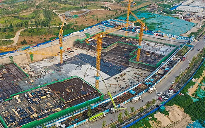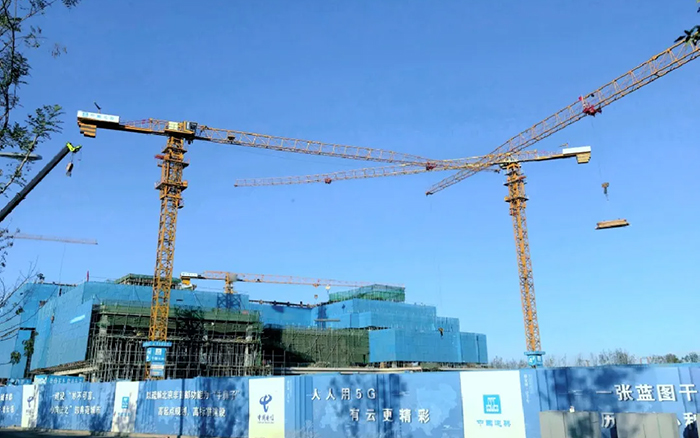這片建筑群是雄安新區(qū)中國電信智慧城市產(chǎn)業(yè)園項(xiàng)目, 徐工S系列塔機(jī)奮戰(zhàn)在施工一線,見證雄安崛起。