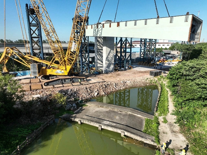 近日,徐工XGC11000(650噸級)履帶起重機現(xiàn)身上海沿江通道施工現(xiàn)場,將11段大型預制節(jié)段梁平穩(wěn)安裝就位,助力項目關鍵節(jié)點高效推進。