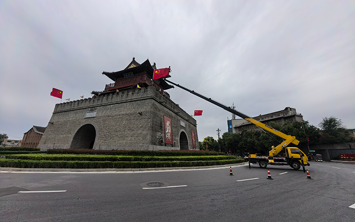 從設(shè)備就位到首面國(guó)旗掛好,施工迅速完成。過往市民紛紛駐足拍照,文昌閣周邊的節(jié)日氛圍隨國(guó)旗懸掛愈發(fā)濃厚。多重安全保障與高效作業(yè)能力,讓 “中國(guó)紅” 在古建筑旁莊重飄揚(yáng),也讓愛國(guó)情懷隨秋風(fēng)傳遞街巷!