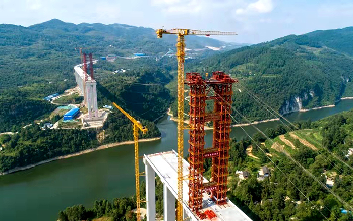 承擔(dān)大橋纜索吊系統(tǒng)架設(shè)的是徐工S系列塔式起重機(jī)主力機(jī)型--XGT7022-10S。在大橋拱肋首節(jié)段吊裝過程中,“徐工金”憑借“精、準(zhǔn)、穩(wěn)”,為大橋的高質(zhì)量、高安全、高效率的施工提供了有力保障,為德余高速公路建設(shè)按下“快進(jìn)鍵”。