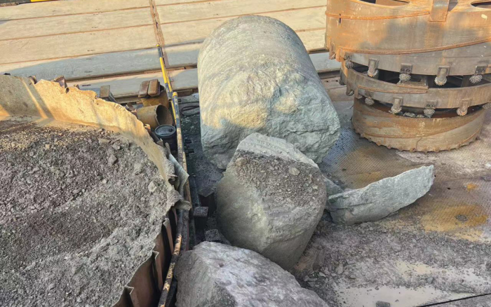 該橋主墩基礎(chǔ)共采用18根6.3米超大直徑鉆孔樁,這是目前國內(nèi)直徑最大鉆孔樁基礎(chǔ)。其樁深106米,水深66米,入巖40米,部分樁基最深達到116米。徐工XR1600E旋挖鉆機需要層層穿越強風(fēng)化花崗巖,弱風(fēng)化破碎花崗巖、碎裂巖、微風(fēng)化破碎流紋巖等復(fù)雜地層,在海底深處為大橋夯基。