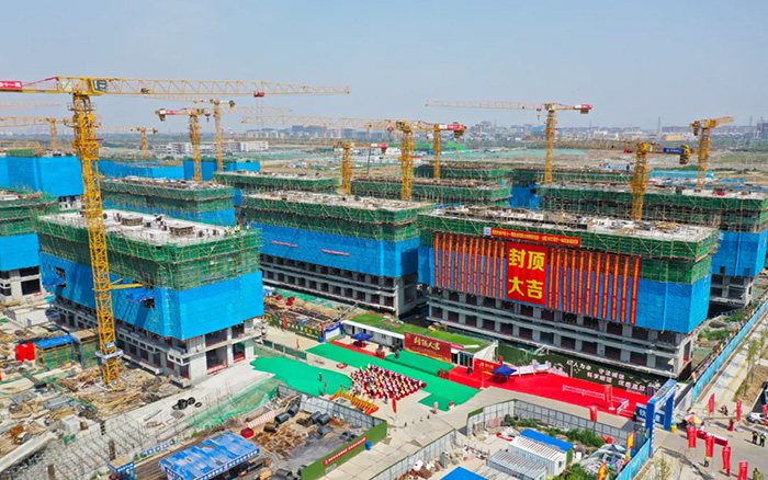 歷經(jīng)200多天奮戰(zhàn),徐工塔機為項目高速建設保駕護航。隨著最后一立方米混凝土澆筑完畢,招商·公園1872項目一標段28棟住宅樓在啟動區(qū)市場化項目中率先全部封頂!