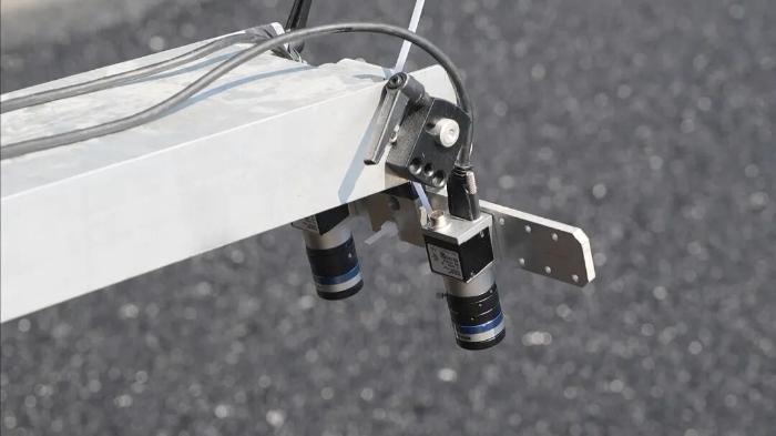 傳統(tǒng)瀝青攤鋪長(zhǎng)期面臨實(shí)時(shí)反饋弱、全域監(jiān)控難的問(wèn)題。東交智控項(xiàng)目團(tuán)隊(duì)研發(fā)的“瀝青路面攤鋪厚度-離析雙模態(tài)實(shí)時(shí)診斷系統(tǒng)”,融合探地雷達(dá)、北斗定位與雙目視覺(jué)技術(shù),通過(guò)智能算法實(shí)現(xiàn)厚度與離析程度的雙維度動(dòng)態(tài)監(jiān)測(cè)。