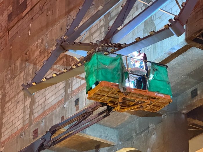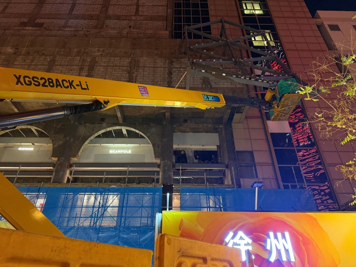 徐工XGS28ACK-Li直臂式高空作業(yè)平臺環(huán)保靜音,純鋰電動力系統(tǒng)實現(xiàn)零排放、低噪音,讓商場施工期間仍能正常營業(yè);緊湊的車身設計讓車輛在商場有限空間內(nèi)自如專場;臂架精準定位,使工作籃能夠精準避開幕墻構(gòu)件,抵達最佳焊接位置,大幅提升施工效率,獲得現(xiàn)場施工人員一致好評。