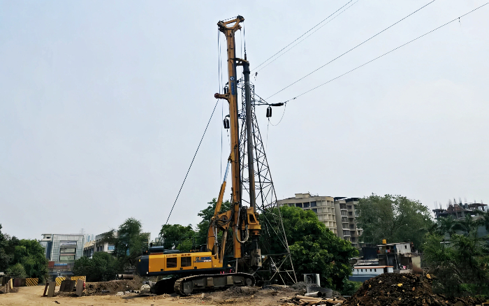 此項目樁徑為900mm,樁深25m,使用徐工XR240I施工平均3.5h可以完成一根樁孔。前11m土層只需要0.5h即可完成,11m–25m為碎石與中風(fēng)化地層,平均施工效率4.4m/h。使客戶每班輕松完成3根樁的指標(biāo)。