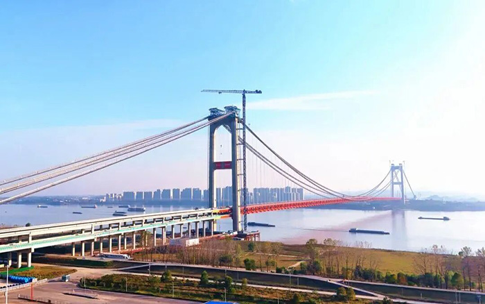 作為直連湖北國際物流核心樞紐機場的戰(zhàn)略通道,燕磯長江大橋的建設(shè)近日取得重大進展。在徐工塔機的協(xié)同作業(yè)下,大橋主橋鋼桁梁合龍段順利完成吊裝,為大橋全線貫通奠定堅實基礎(chǔ)。