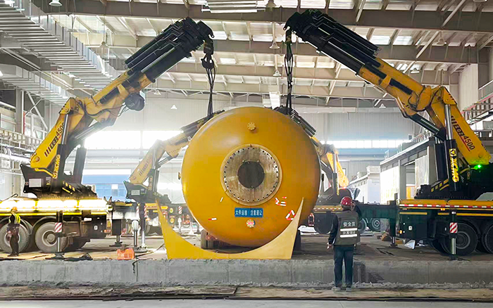 廠房車間層高受限、作業(yè)空間局促,給超大型設(shè)備轉(zhuǎn)運(yùn)帶來極大挑戰(zhàn)。而 SQZ4500C 僅 3400mm 的外形高度,恰好適配低矮工況,無需拆改廠房即可靈活穿梭。其 6 節(jié)伸縮臂(四節(jié)雙推)最長可達(dá) 16.2m,具備強(qiáng)大的帶載伸縮能力,配合精準(zhǔn)比例控制液壓系統(tǒng),四機(jī)協(xié)同實(shí)現(xiàn)毫米級(jí)走位,讓笨重的高溫爐在狹窄通道中平穩(wěn)前移。