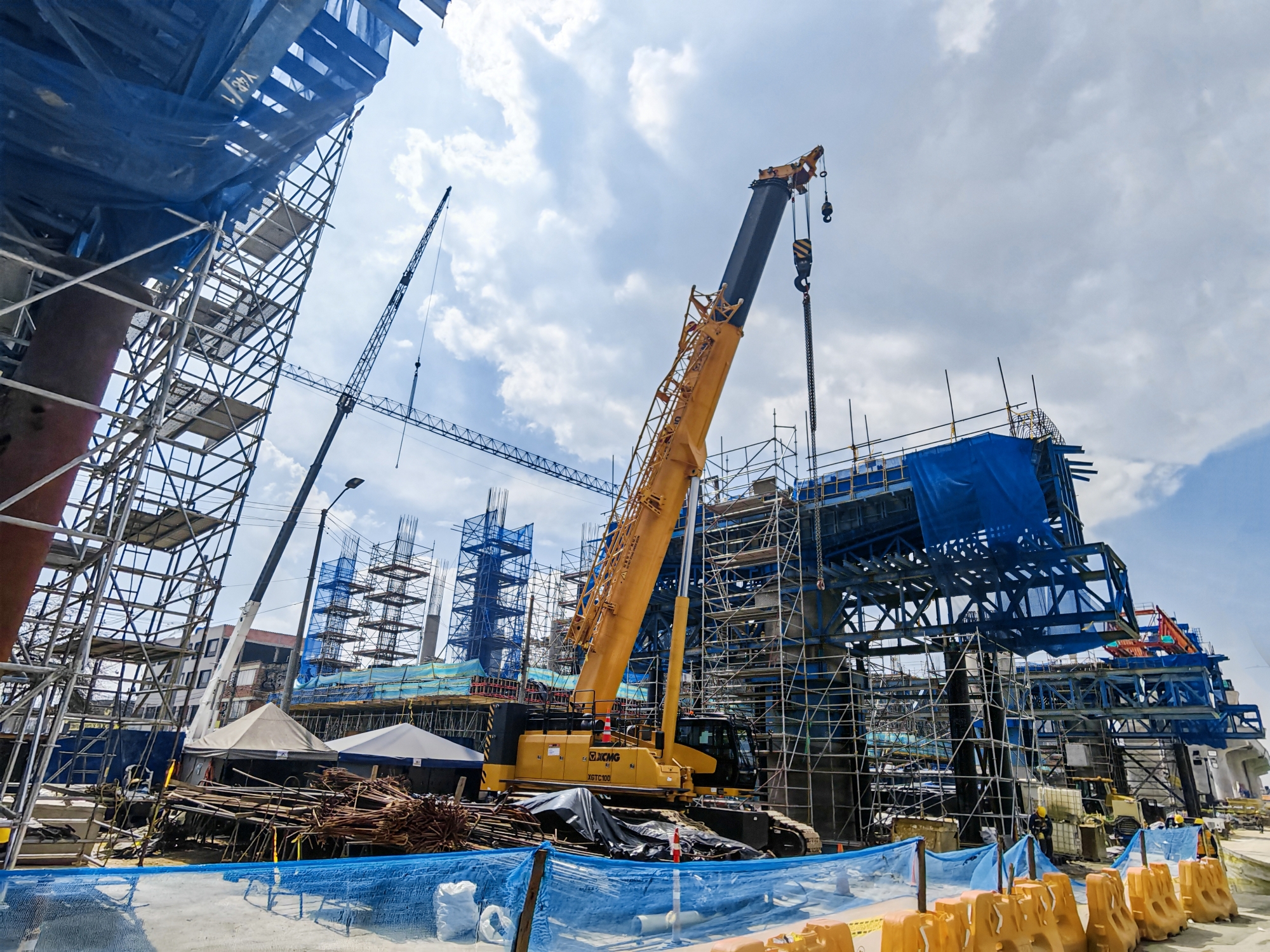 項(xiàng)目施工貫穿城市核心區(qū)域,需臨時(shí)占用公路,作業(yè)空間狹窄、交通密集,對設(shè)備靈活性要求極高。傳統(tǒng)起重機(jī)因占地面積大、帶載行駛性能差難以適配這一復(fù)雜工況,而XGTC80與XGTC100兩款設(shè)備憑借核心優(yōu)勢成功破局。